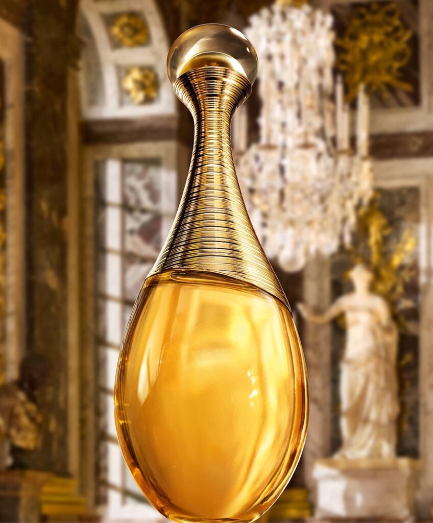 Η νέα, λαμπερή διαφάνεια αναδεικνύει τη μορφή σταγόνας, ενώ στην κορυφή του λεπτού λαιμού δεσπόζει μια χρυσαφένια πέρλα με χαραγμένο το όνομα J’adore- ένα πολύτιμο κόσμημα που αιωρείται μέσα στη διαφανή σταγόνα αρώματος.